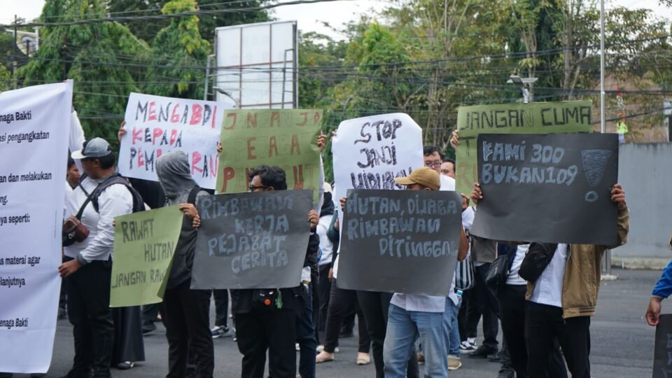 Samarinda, Natmed.id – Aksi unjuk rasa Tenaga Bakti Rimbawan di Dinas Kehutanan pada Selasa, 27 Januari 2026 berakhir dengan harapan mendapat titik terang, mereka menuju kantor Gubernur Kaltim di Jalan Gajah Mada.