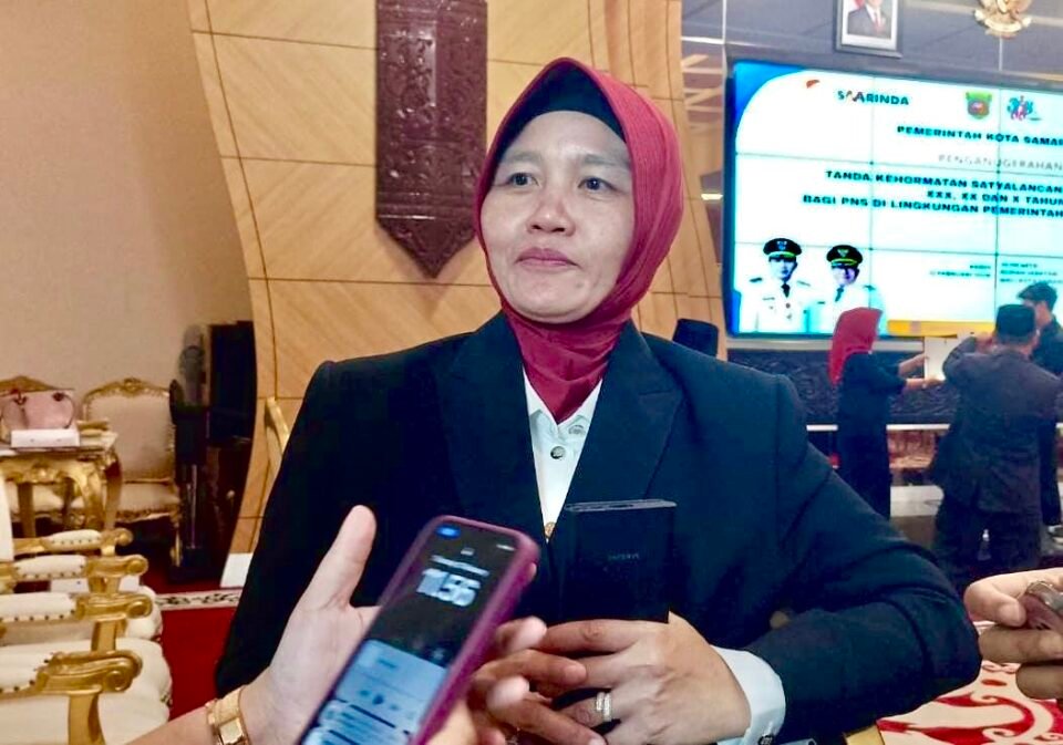 Teks: Kepala Inspektorat Kota Samarinda Neneng Chamelia usai menghadiri Penganugerahan Satyalencana Karya Satya X, XX, dan XXX Tahun (Natmed.id/Aminah)