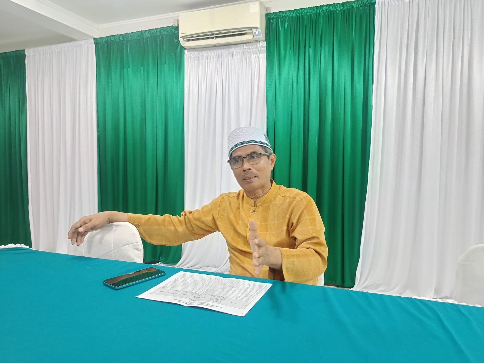 Teks: Ketua Yayasan Masjid Raya Darussalam Arnani Saat Wawancara, Rabu,18/3/26. (Natmed.id/Aminah)