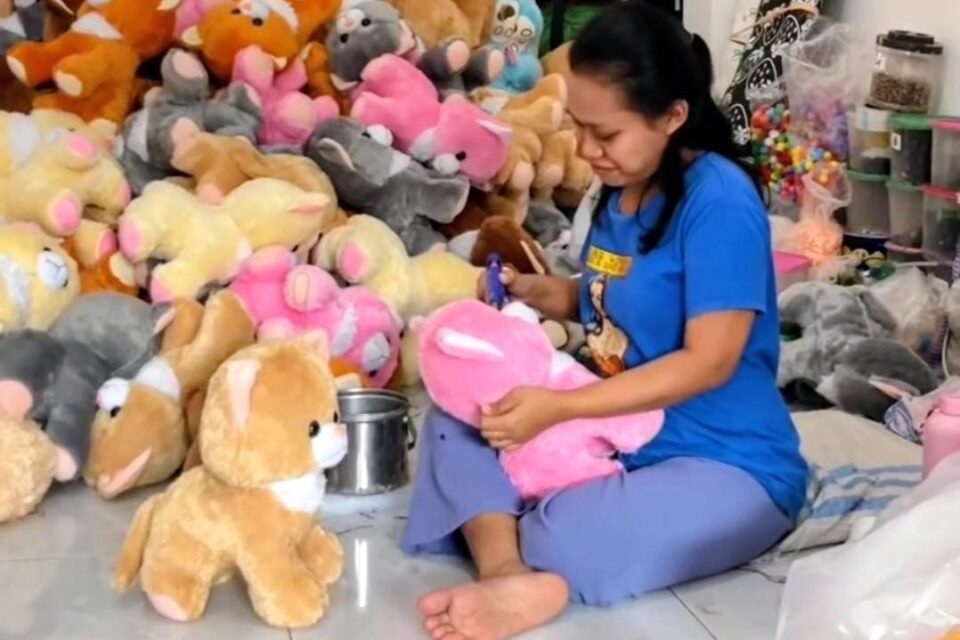 Pasuruan, Natmed.id – Di sebuah rumah di Desa Sumbergedang, Kecamatan Pandaan, Kabupaten Pasuruan, boneka-boneka berbagai ukuran tersusun rapi. Ruang keluarga hingga teras rumah dimanfaatkan sebagai tempat produksi sekaligus penyimpanan.