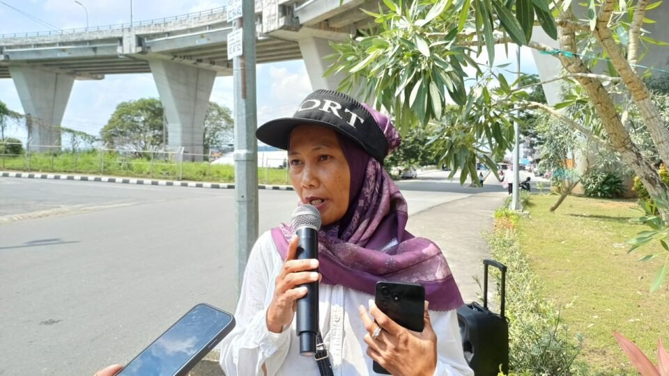 Teks: Ketua Koperasi Emak-Emak Bugis Bersatu Haslinda,saat melakukan penggalangan Dana, Minggu Sore,8/3/26 (Natmed.id/sahal)