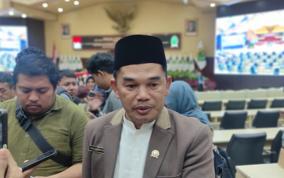 Teks: Ketua DPRD Kaltim Hasanuddin Mas’ud Usai Pimpinan Rapat Paripurna di Gedung B DPRD Kaltim, Senin 23/2/26. (natmed.id/Aminah)
