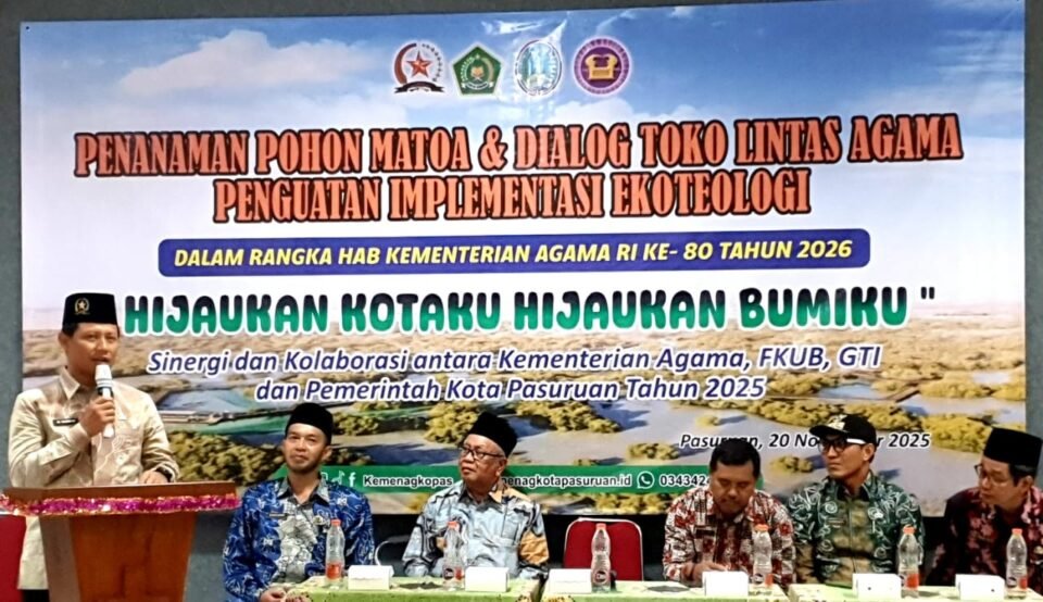 Pasuruan, Natmed.id – Kementerian Agama Kota Pasuruan bersama Forum Kerukunan Umat Beragama (FKUB), Gereja Tabernakel Indonesia “Bukit Zaitun”, serta Pemerintah Kota Pasuruan menggelar penanaman pohon matoa dan dialog tokoh lintas agama, Kamis 20 November 2025. Kegiatan tersebut digelar untuk memperingati Hari Amal Bakti (HAB) Kementerian Agama RI ke-80 sekaligus menguatkan implementasi ekoteologi.