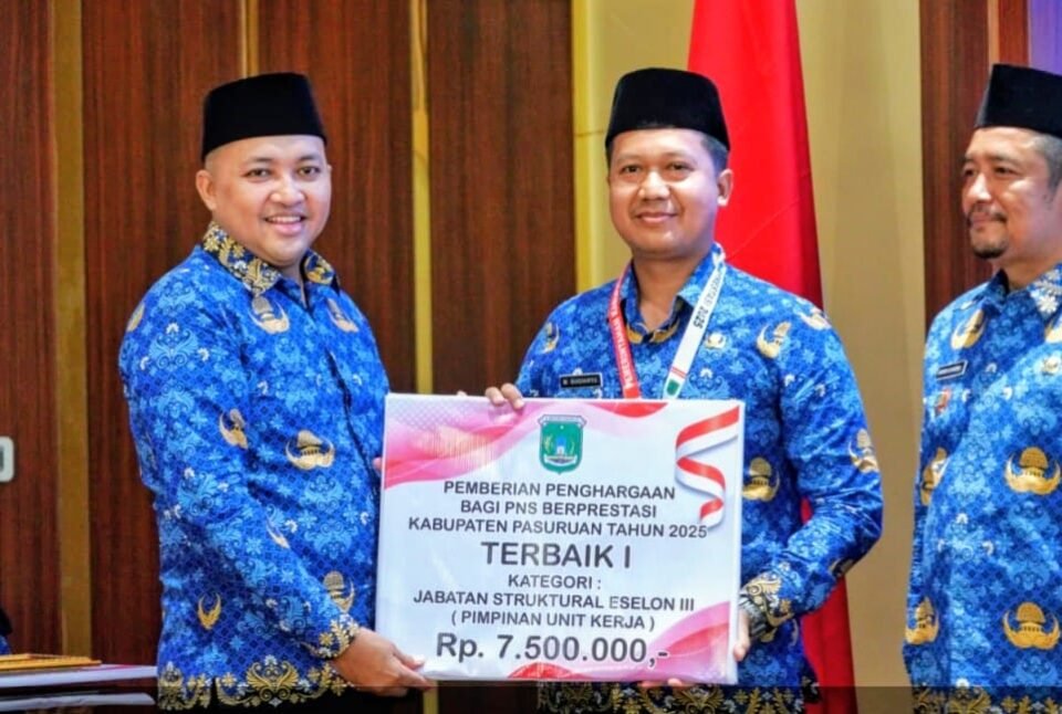 Pasuruan, Natmed.id – Pemerintah Kabupaten Pasuruan memperingati Hari Ulang Tahun (HUT) Korps Pegawai Republik Indonesia (Korpri) ke-54 dengan memberikan penghargaan kepada aparatur sipil negara (ASN) berprestasi, Senin 1 Desember 2025. Sebanyak 15 pegawai dari berbagai organisasi perangkat daerah (OPD) menerima apresiasi langsung dari Bupati Pasuruan Rusdi Sutejo.