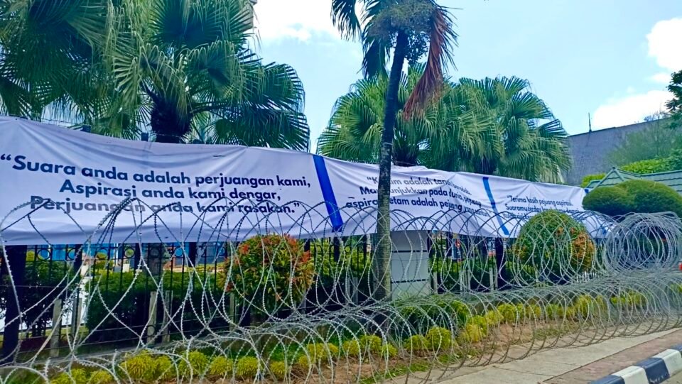 Samarinda, Natmed.id – Di tengah pengamanan ketat jelang puncak aksi unjuk rasa 21 April 2026, Pemerintah Provinsi Kaltim memasang sejumlah spanduk berisi imbauan damai di kawasan Kantor Gubernur Kaltim.
