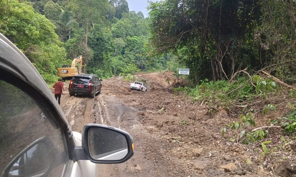Teks: Jalan Bongan Kubar terlihat kondisi Jalan Berlumpur mendapat perhatian Gubernur Kaltim (Dok/Natmed.id/Sukri)
