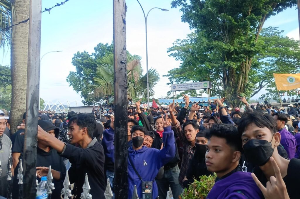 Namun, sebagian peserta aksi masih bertahan di depan gerbang kantor gubernur. Massa bahkan sempat menyanyikan lagu “Buruh Tani” sebagai simbol perlawanan di akhir aksi.