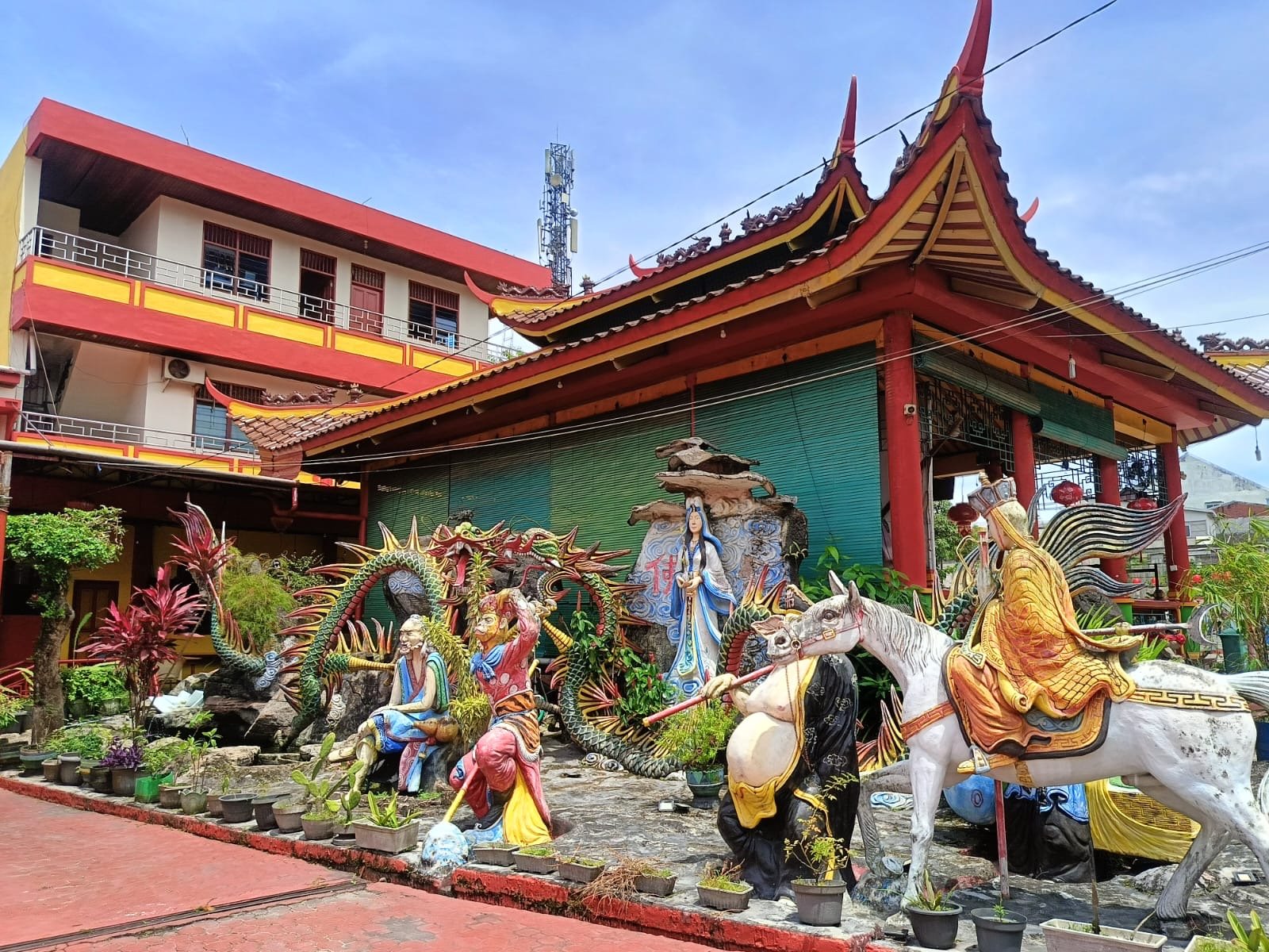 Pantauan di lokasi menunjukkan nuansa merah mendominasi area klenteng. Lampion warna-warni berderet di halaman dan pintu masuk, sementara di altar utama dupa dan lilin merah berukuran besar telah terpasang.