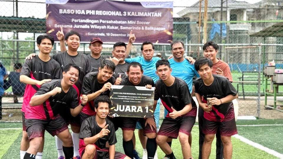 Samarinda, Natmed.id – Pertandingan final mini soccer BASO IGA Pertamina Hulu Indonesia (PHI) Regional Kalimantan berakhir manis bagi Tim Jurnalis Samarinda 2 setelah dua gol tanpa balas ke gawang Balikpapan mengunci gelar juara turnamen yang digelar di Lapangan Aubry Juanda, Samarinda, Jumat, 12 Desember 2025.