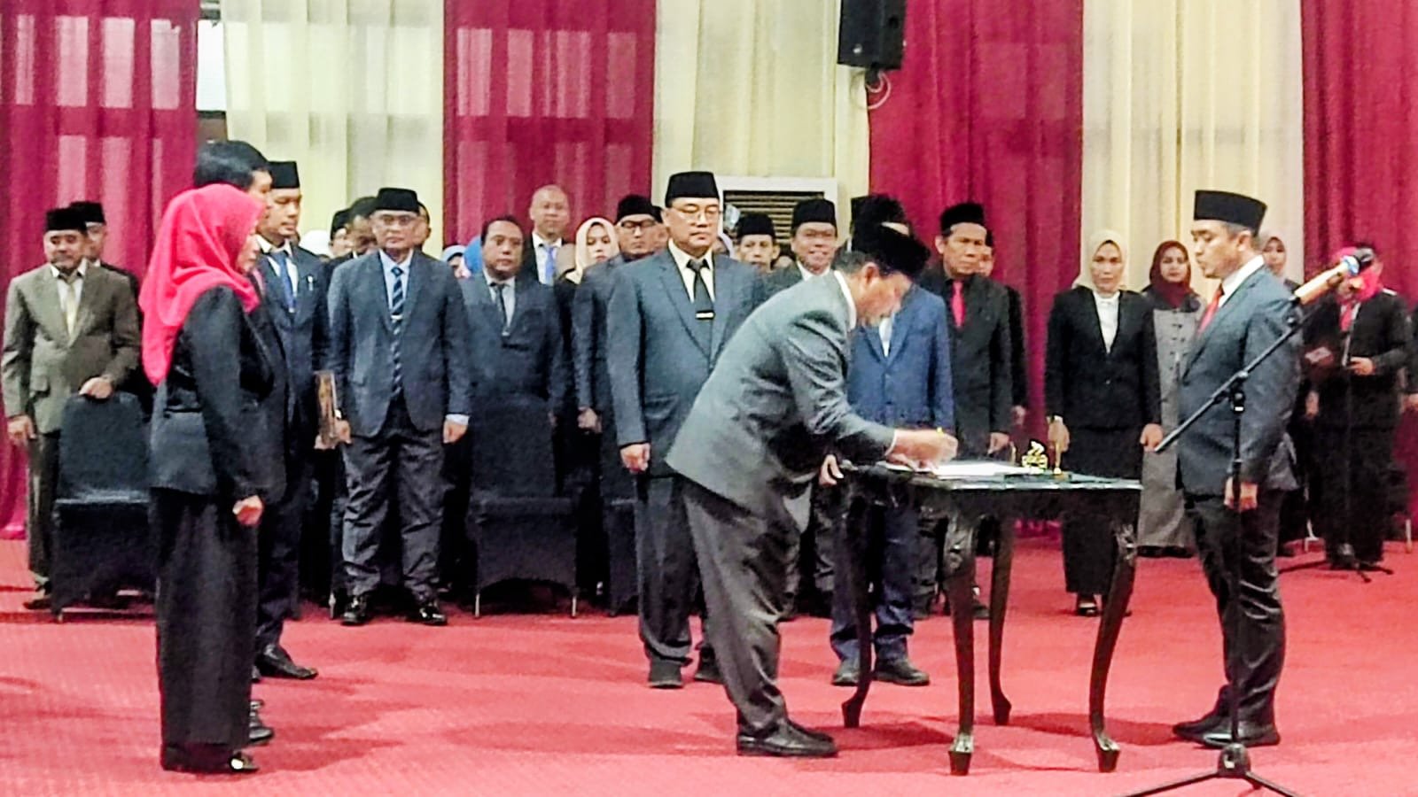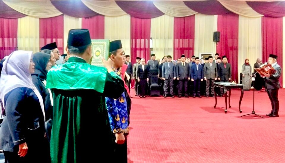 Pelantikan tersebut mencakup 8 Pejabat Pimpinan Tinggi Pratama, 25 Administrator, 12 Pengawas, 28 Pejabat Fungsional, serta pengambilan sumpah 1 orang PNS. Kegiatan berlangsung pada malam hari dan dihadiri unsur pimpinan daerah.
